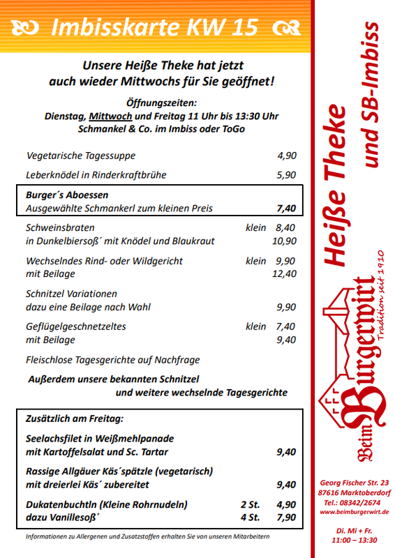 wechselnde und günstige Mittagsmenüs angeboten werden!