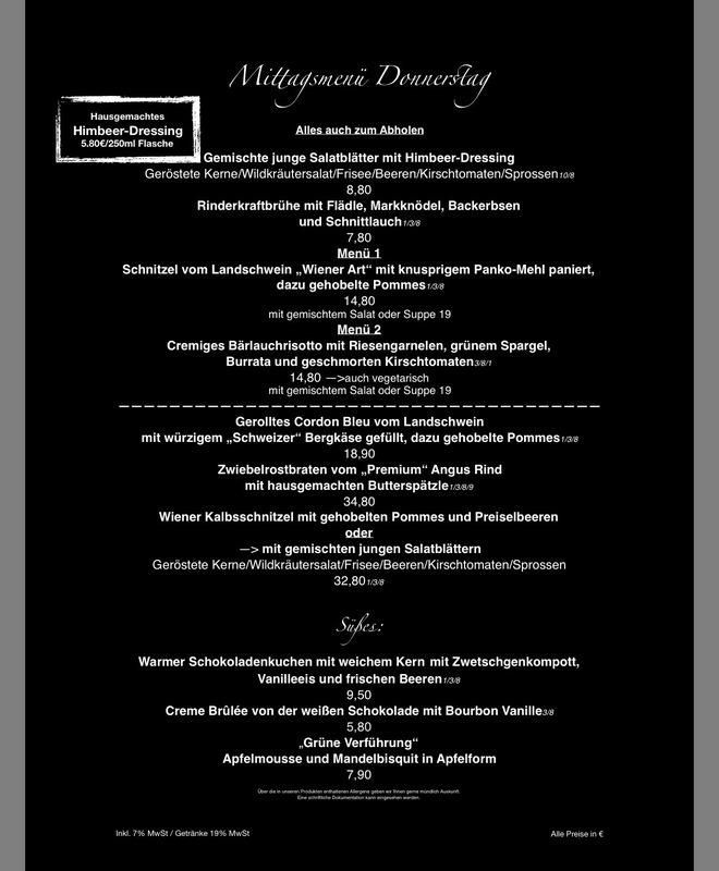 empfohlenen Mittagstischlokales.