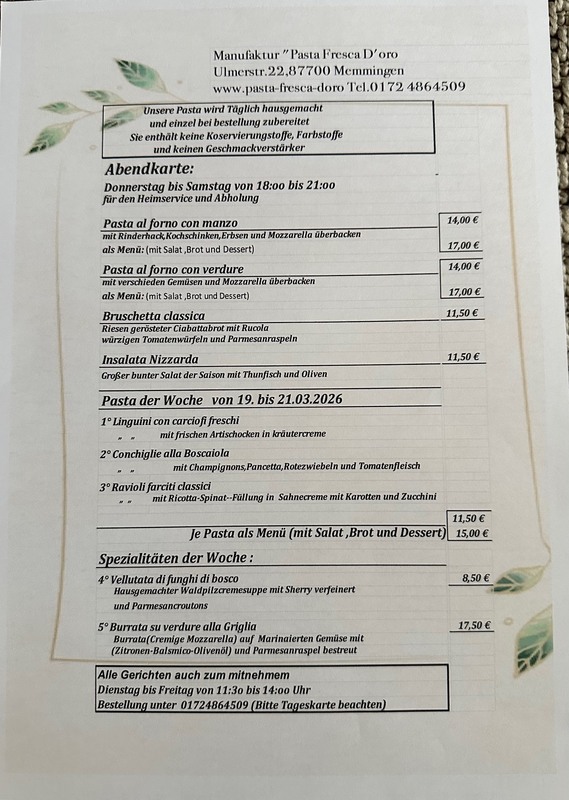 Über Pasta Fresca d'oro Pasta Fresca “il sapore d’Italia” wir freuen uns auf Sie! Mehr über uns » Mehr zu Memmingen » Mehr zur Region Allgäu Bodensee »