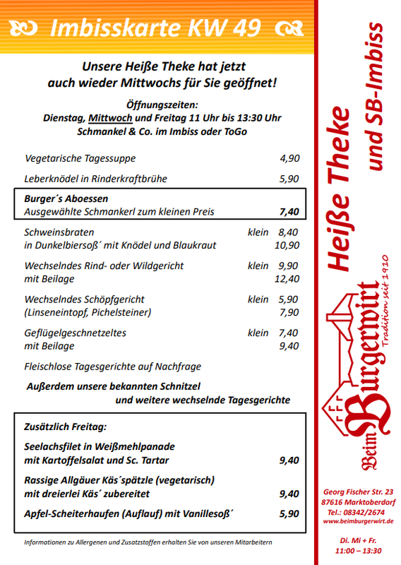 wechselnde und günstige Mittagsmenüs angeboten werden!