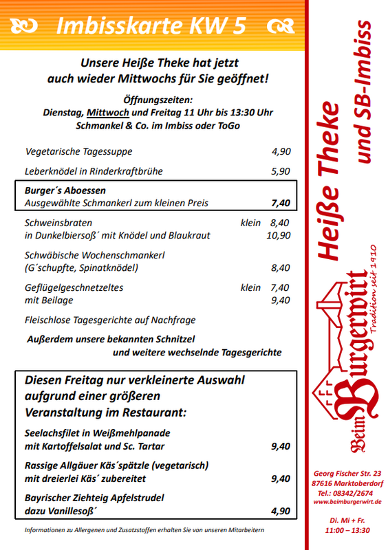 wechselnde und günstige Mittagsmenüs angeboten werden!
