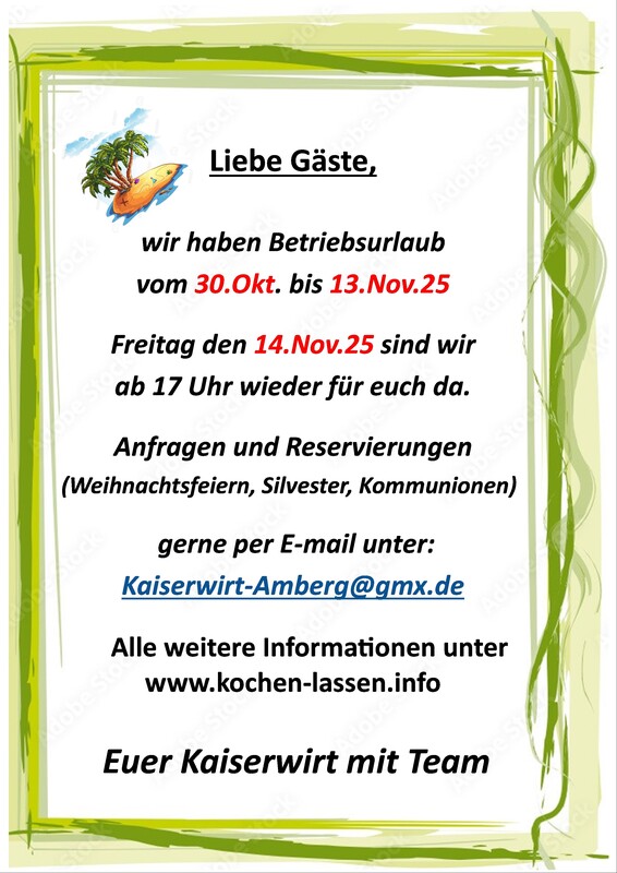 wir haben Betriebsurlaub vom 30. Oktober bis zum 13. November