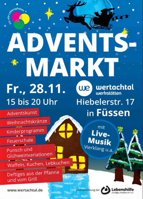 Freitag, 28. November: 15 – 20 Uhr: A D V E N T S M A R K T in den Wertachtal Werkstätten – Hiebeler Str. 17 Füssen