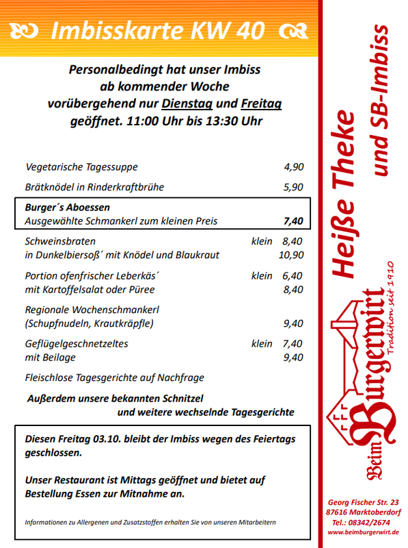 wechselnde und günstige Mittagsmenüs angeboten werden!
