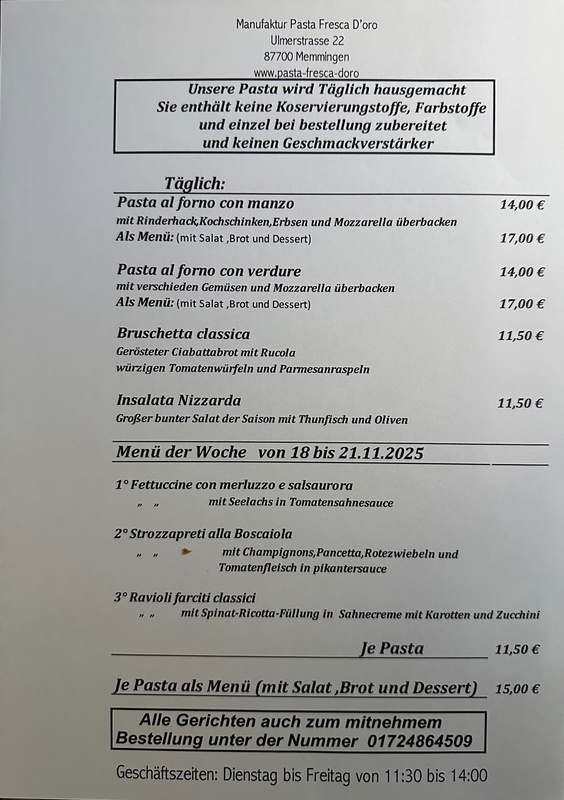 Über Pasta Fresca d'oro Pasta Fresca “il sapore d’Italia” wir freuen uns auf Sie! Mehr über uns » Mehr zu Memmingen » Mehr zur Region Allgäu Bodensee »
