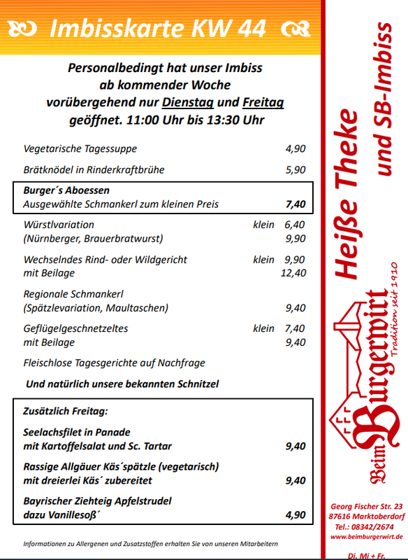 wechselnde und günstige Mittagsmenüs angeboten werden!