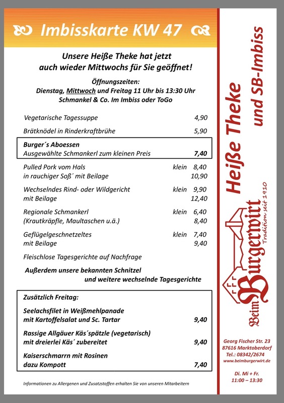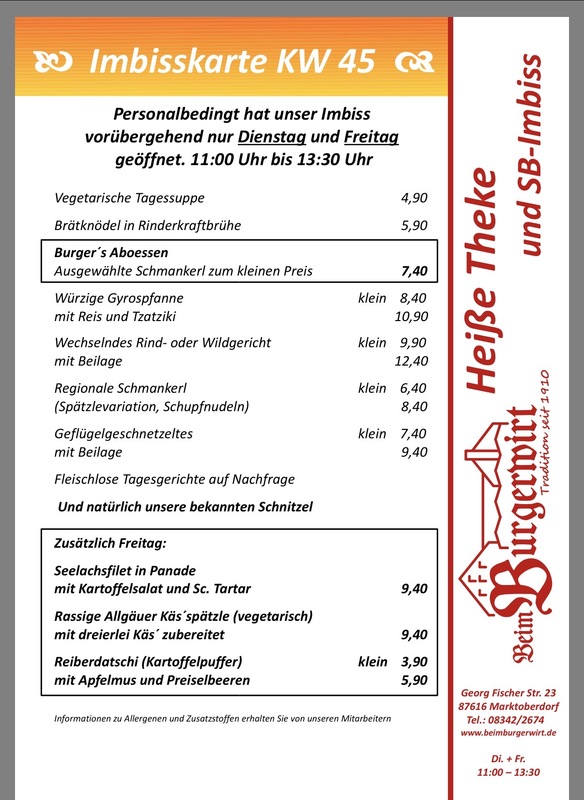 wechselnde und günstige Mittagsmenüs angeboten werden!